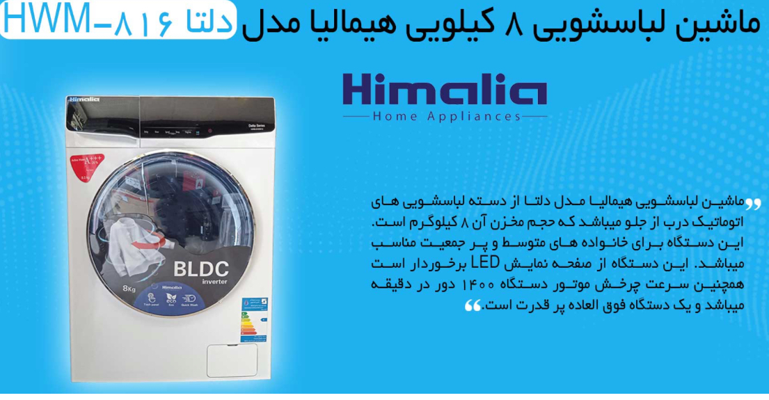 ماشین لباسشویی هیمالیا مدل HWM-816 ظرفیت ۸ کیلوگرم