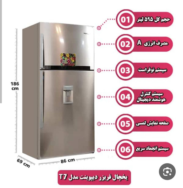 یخچال و فریزر 28 فوت دیپوینت مدل T7 یکی از محبوبترین محصولات شرکت دیپوینت است که دارای ویژگیهایی نظیر ضدبرفک، کشو با تنظیم دما و رطوبت و مصرف انرژی رده A است. این محصول با توجه به قیمتی که دارد از لحاظ اقتصادی بسیار به صرفه است و میتواند پاسخگوی نیازهای یک خانواده متوسط و کم جمعیت باشد.