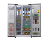 یخساز دستگاه نیز یخ به دو مدل قالبی و خرد شده ارائه میدهد خود مخزن یخها نیز بر روی فضای داخلی درب فریزر قرار گرفته که باعث آزاد شدن دو طبقه فوقانی درون ساید میشود که خود باعث افزایش گنجایش مفید درون ساید بای ساید میشود.